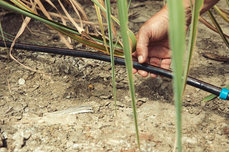 En caña, los laterales largos y las pendientes hacen fundamental el uso de líneas con PC (Pressure Compensation) para asegurar uniformidad superior al 90-95.