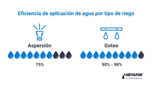 El riego por goteo hoy es una de las mejores opciones, ya que tiene una eficiencia arriba del 90%, creando una franja de humedad del 20 al 40% en comparación de toda la superficie. También te permite hacer una fertirrigación vía sistema de manera optima, aprovechando al máximo los recursos disponibles en el momento que el cultivo lo requiere, además permite un mayor seccionamiento comparado con un manejo de temporal.