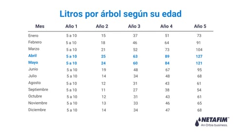 Los cítricos absorben entre 889 mm y 1219 mm de agua anuales, y esta es indispensable para el crecimiento y desarrollo del árbol, ya que interviene en todos sus procesos fisiológicos.