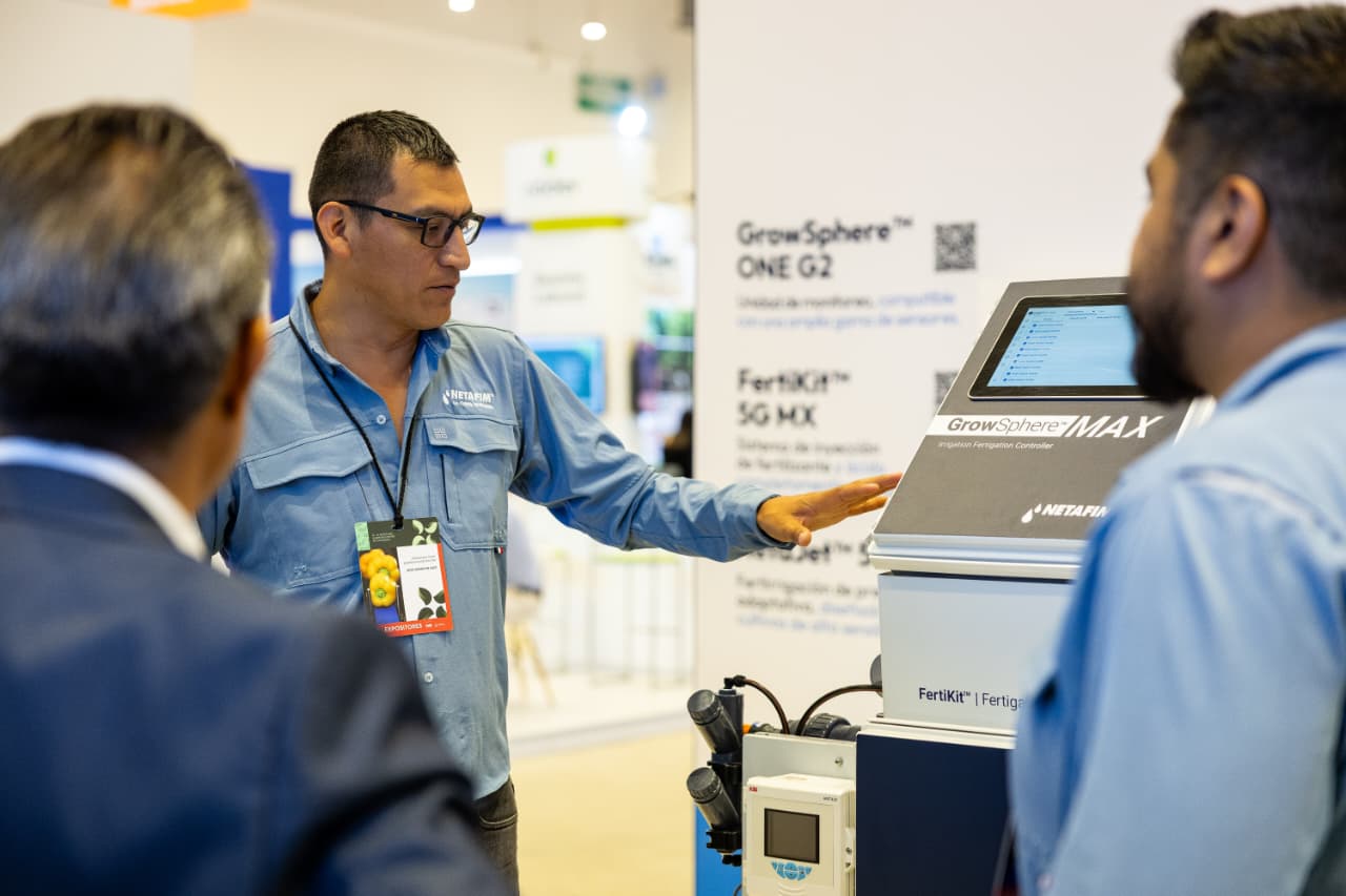 Durante los tres días de evento, Netafim México presentó a los visitantes el funcionamiento de GrowSphereTM, un sistema operativo diseñado para facilitar el monitoreo, la toma de decisiones y automatizaciones clave en el manejo del riego y la fertiirrigación. Se destacó cómo esta plataforma reúne información clave del cultivo y de los sistemas de riego a través de sensores y hardware propio de Netafim.